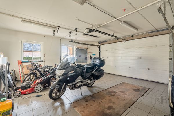 Op het gelijkvloers is er ook een inpandige dubbele garage (met fosse) welke rechtstreekse toegang biedt tot de kelder.