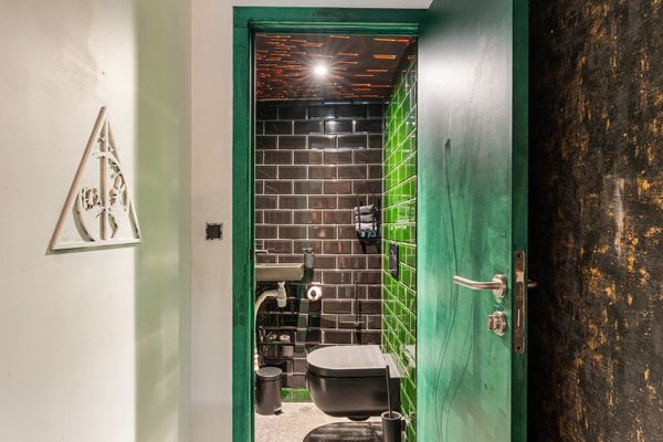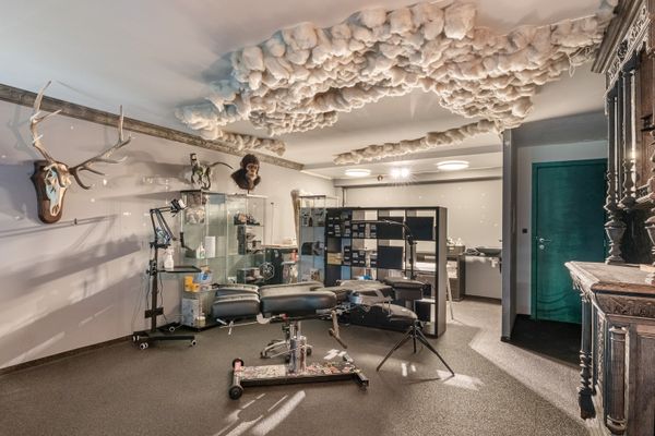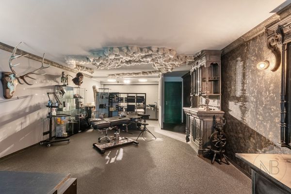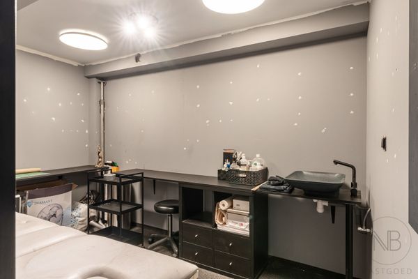 - De verdieping heeft een stoerdere, donkere uitstraling in zwarttinten, wat perfect aansluit bij creatieve of alternatieve activiteiten zoals tattoo, design of atelier.
