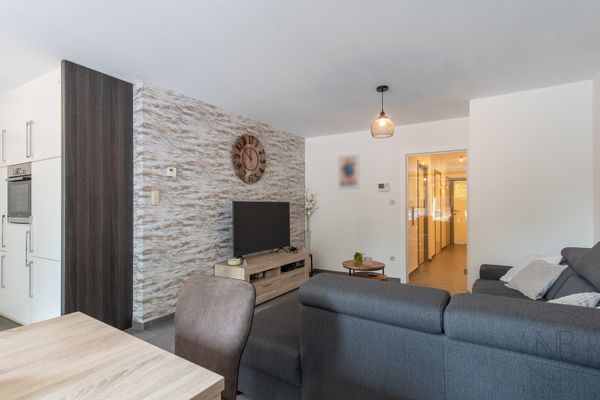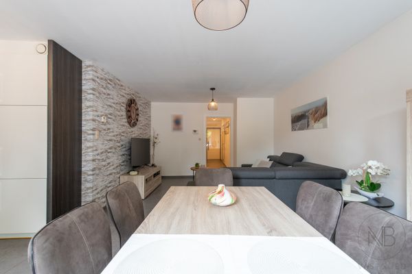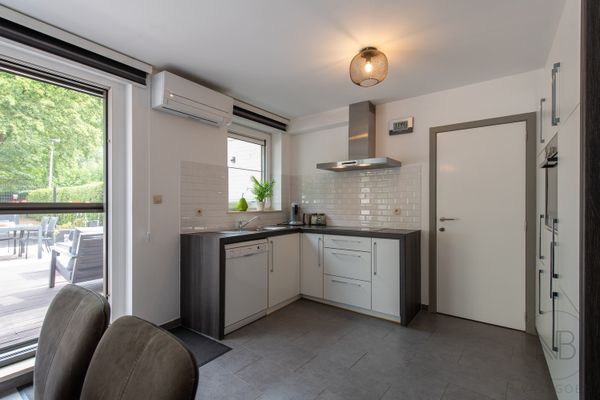 Dit appartement ligt in Zwartberg, in de directe omgeving van La Biomista. Er zijn tal van voorzieningen, zoals horecagelegenheden, de gezellige picknickplek Nomadland met stadstuintjes en diverse winkels. De Koning Boudewijnlaan, een belangrijke verbindingsweg in Genk, biedt gemakkelijke toegang tot de E314-snelweg, wat zorgt voor een vlotte verbinding. Het appartement maakt deel uit van een kleine residentie, en ligt op de gelijkvloerse verdieping. Het appartement zelf bestaat uit een inkomhal, een grote leefruimte met open keuken, 2 bergingen (met aansluiting voor wasmachine), een badkamer met inloopdouche , een apart gastentoilet, een slaapkamer. Het appartement is uitgerust met rolluiken en airco. In de benedenverdieping is er een autostaanplaats en kelderberging. De grote troef van dit appartement is het privatieve terras aan de achterzijde, met aansluitend de gemeenschappelijke tuin.