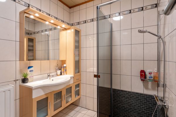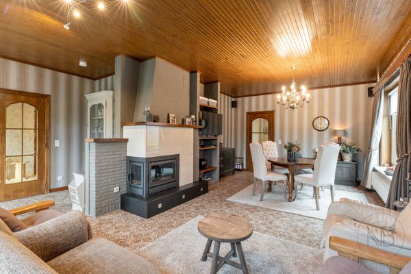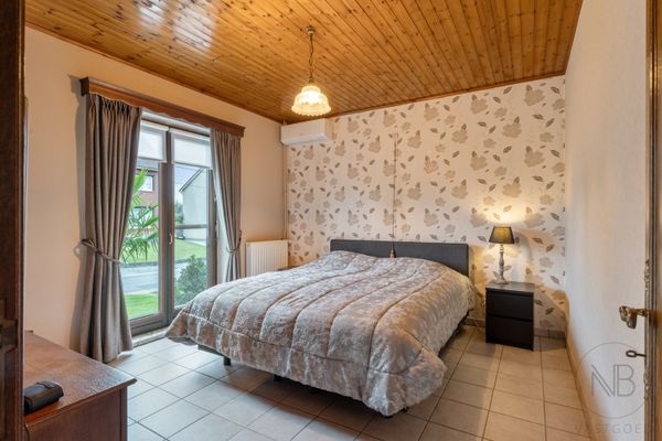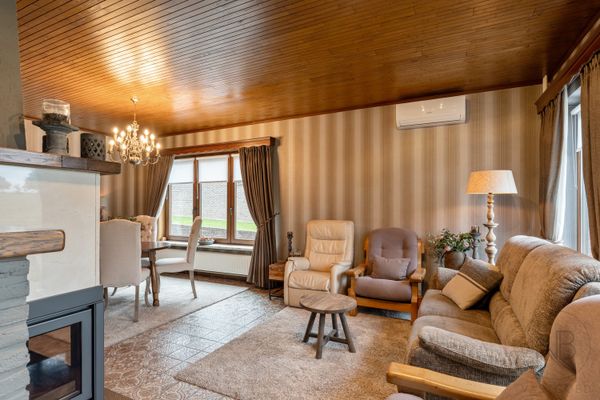 De ruime centrale inkomhal geeft toegang tot drie comfortabele slaapkamers, een vernieuwde badkamer met inloopdouche en lavabo, de keuken en de woonkamer. In de gezellige woonkamer kan u tijdens de wintermaanden genieten van de warmte van de open haard, terwijl de airco u in de zomer het nodige comfort biedt. De keuken sluit aan op een praktische berging en een aparte wasplaats. Verder beschikt de woning over een inpandige garage en een overdekt terras. Ook de zolder biedt nog mogelijkheden voor wie extra ruimte of bergruimte nodig heeft. De aangelegde oprit en verzorgde tuin maken het geheel compleet.