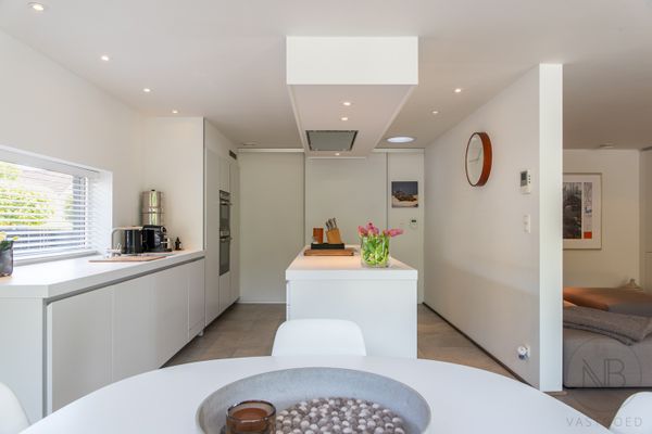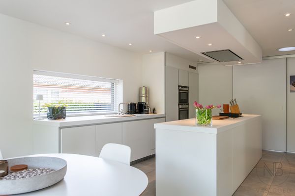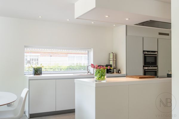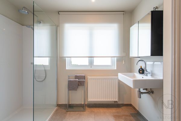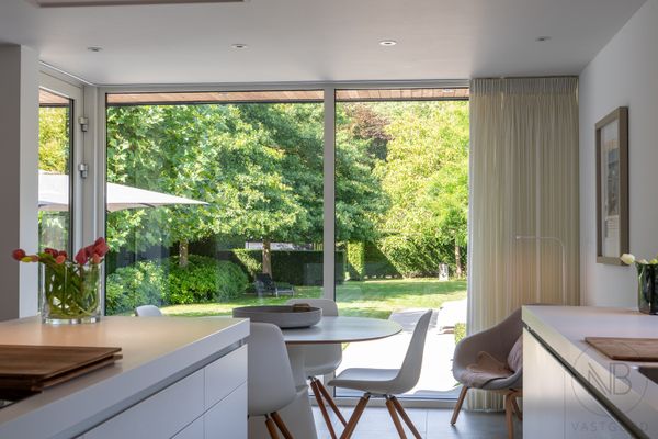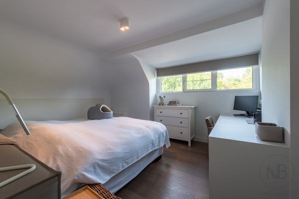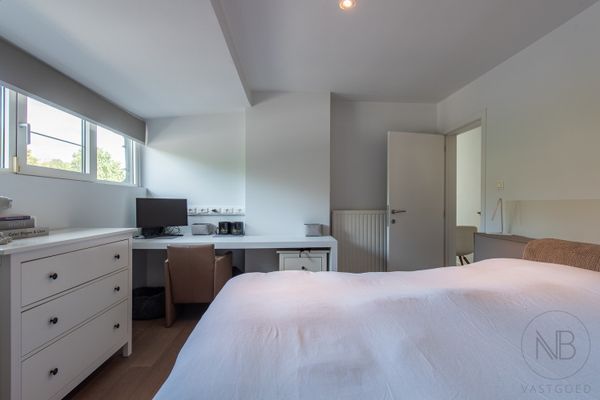 Flexibel wonen is hier mogelijk. De gezellige en lichtrijke leefruimte met gashaard sluit aan bij de perfect ogende Bulthaup keuken. Daarnaast is er een aparte studio voorzien met keuken en eigen badkamer. Op de verdieping zijn er nog 3 slaapkamers en een 2de badkamer. Er is een volledige kelder , welke rechtstreeks bereikbaar is via de tuin. Qua duurzaamheid kan deze woning tellen : dak en ramen werden vernieuwd, de elektriciteit is conform, er zijn zonnepanelen met thuisbatterij en laadpaal voor een elektrische wagen. EPC A-label !