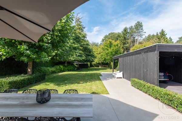 Naast de woning is er een moderne garage met een 2de overdekt terras. De onderhoudsvriendelijke tuin heeft een beregeningssysteem, aangesloten op een regenwaterput.