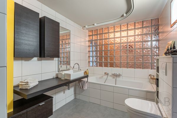 Op de bovenverdieping vindt u drie slaapkamers, een kantoorruimte en een badkamer met bad, douche en lavabo. EPC: 414 kWh/(m2jaar) label E