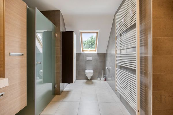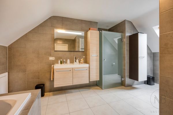 - Grote badkamer met ligbad, douche, dubbele lavabo en toilet