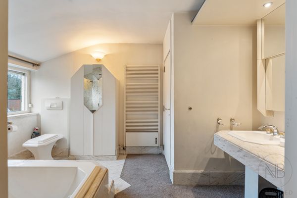 met ligbad, inloopdouche, toilet en dubbele wastafel