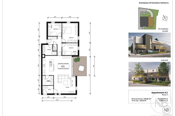 Gelijkvloers appartement met 3 slaapkamers incl. parking en kelderberging