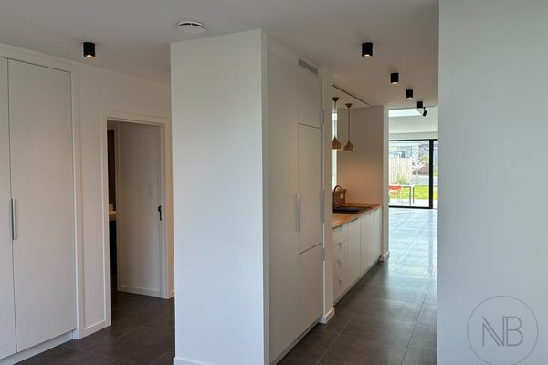 De woning beschikt op het gelijkvloers over een ruime en open leefruimte met veel lichtinval, die naadloos overgaat in een moderne, uitgeruste keuken. Verder vindt je hier ook tal van praktische opbergmogelijkheden, wat zorgt voor extra comfort in het dagelijks leven.