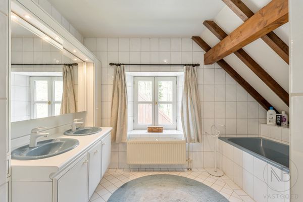 Buiten geniet u van een uitzonderlijk aangelegd geheel met twee prachtige tuinzones met terrassen. De eerste tuin is voorzien van een sfeervolle vijver, terwijl de tweede tuin harmonieus wordt omringd door een beek, wat zorgt voor een uniek samenspel van water en natuur.